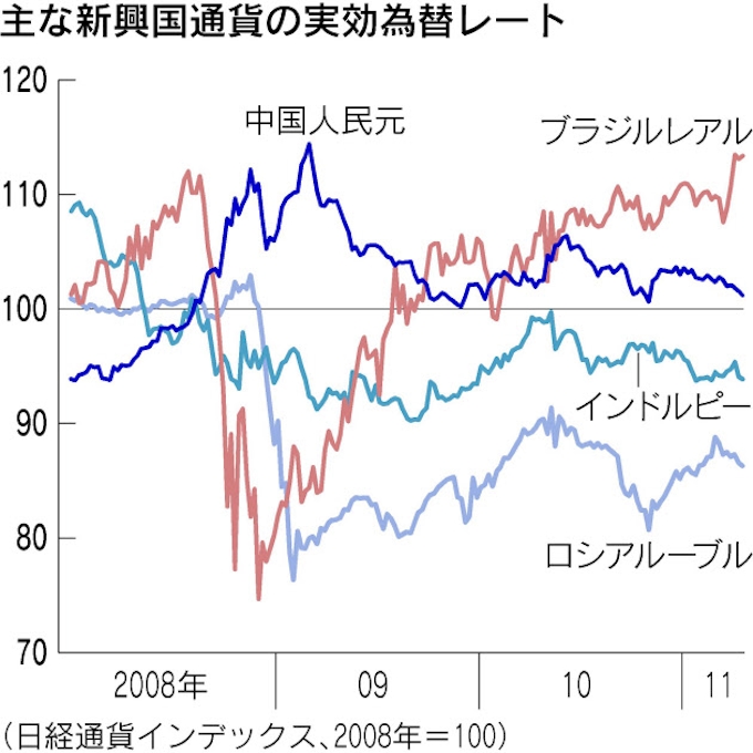 新興国通貨が二極化 ブラジルレアルなど資源国上昇 日本経済新聞
